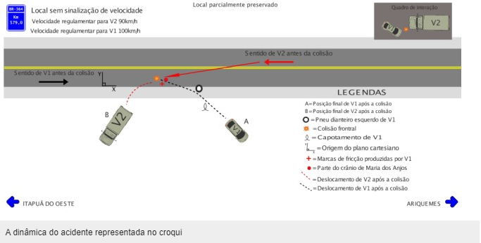 Em seu relato, a condutora do caminhão diz que trabalha a 15 anos na profissão e nunca se envolveu em acidente, mas naquela noite seguia de Cuiabá para Porto Velho quando no km 579 da BR-364, perto de Itapuã, sentiu segurança para realizar uma ultrapassagem junto com outro caminhão que seguia a frente sendo que o primeiro terminou, e ela se deparou com o Fiat Siena que seguia sentido oposto.