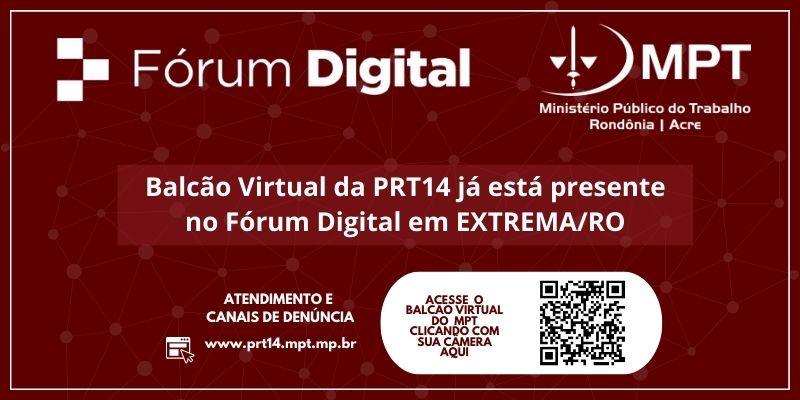Recentemente, a Procuradoria Regional do Trabalho da 14ª Região (MPT/PRT14) implementou uma nova ferramenta para atendimento ao público: o Balcão Virtual da PRT14. Este novo mecanismo já está presente também no Fórum Digital.