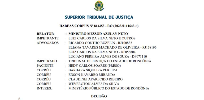 A decisão, prolatada pelo ministro Messod Azulay Neto, saiu na última segunda-feira (10), mas até a noite desta terça-feira ainda não aparecia no site do STJ