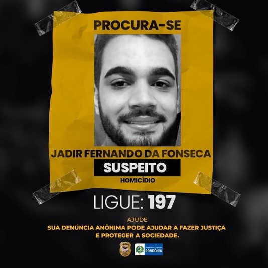 JADIR FERNANDO FONSECA, 27 anos, é residente na Zona Rural do município de Alta Floresta D´Oeste. Caso alguém tenha alguma informação relevante, pedimos que entre em contato imediatamente com a Polícia Civil de Rondônia através do número 197, pelo aplicativo de mensagem WhatsApp 98439-0102, acessado o QRDCOD da imagem ou ainda comparecendo à Delegacia mais próxima.