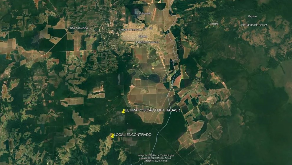 Os destroços da aeronave foram localizados em uma área de mata, seis quilômetros além do último registro captado pelo radar.