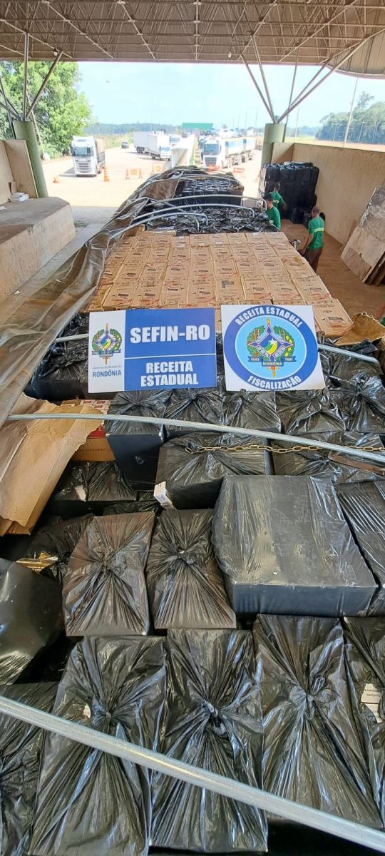 No último sábado (14), um caminhão carregado com 780 caixas de cigarros, equivalente a 390 mil maços, além de uma pequena quantidade de adubos, foi realizada pela Secretaria Estadual de Finanças (Sefin) e Polícia Rodoviária Federal (PRF). A carga foi avaliada em R$4 milhões de reais.