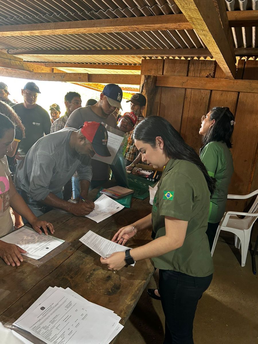 Foram disponibilizados 59 contratos. As famílias que não assinaram no local poderão retirar na Unidade Avançada do Incra em Buritis (Rua Theobroma, 1480, Setor 2), portando documentos pessoais do beneficiário ou do casal, quando for o caso.
