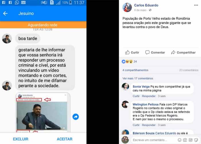 Além disso, salientou que Veiga teria se utilizado do vídeo original no palanque da Casa de Leis de Rondônia para expor “somente as partes que lhe interessavam” para denegrir sua imagem, “tendo em vista ser ano de eleição, o que agrava ainda mais a situação”.