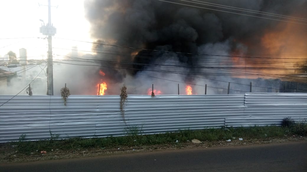 Incêndio consome veículos apreendidos pelo Denar em Porto Velho. O perímetro está sendo isolado agora. Confira imagens EXCLUSIVAS feitas com Drone que mostra a situação do incêndio.