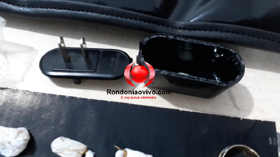 Segundo a polícia, o suspeito foi abordado no estabelecimento onde trabalhava. Em revista minuciosa, os policiais encontraram 12 porções de cocaína oxidada que estavam em uma fonte de carregador de celular, que ficava escondida em um buraco do tijolo no muro do comércio. Certa quantia em dinheiro também foi apreendida, bem como um pedaço de metal que era usado para puxar a droga do "esconderijo".