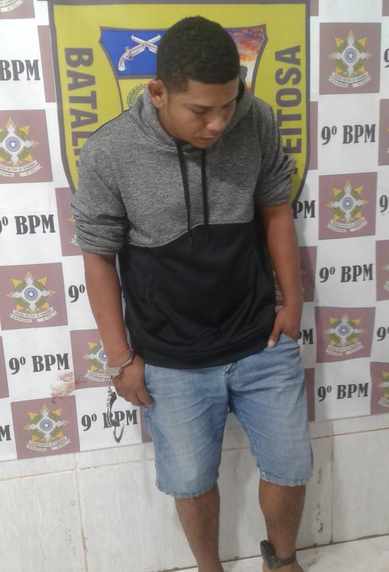 Suspeito de vender droga em frente a uma quadra de futebol na Rua Laranjeira com Pitangueira, bairro Castanheira, na zona Sul de Porto Velho, o apenado João Maicon M. F., 31, foi preso em flagrante na noite de quinta-feira (18).