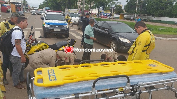 Conforme o Rondoniaovivo apurou no local, o condutor de uma motocicleta Honda Fan seguia na Avenida Jorge Teixeira sentido ao viaduto, quando precisou frear repentinamente no momento em que o semáforo fechou.