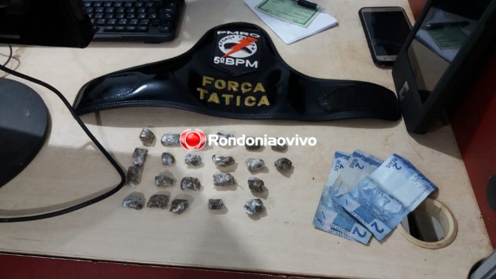Mais um flagrante de tráfico de drogas foi registrado na noite de quarta-feira (23) em Porto Velho. Erison Vinicius O. S., 18, foi preso por uma equipe da Polícia Militar do 5° Batalhão durante uma abordagem na Rua Benedito Inocêncio, bairro Jk, na zona Leste da capital. O suspeito já tem passagens por tentativa de homicídio e receptação de veículo roubado.