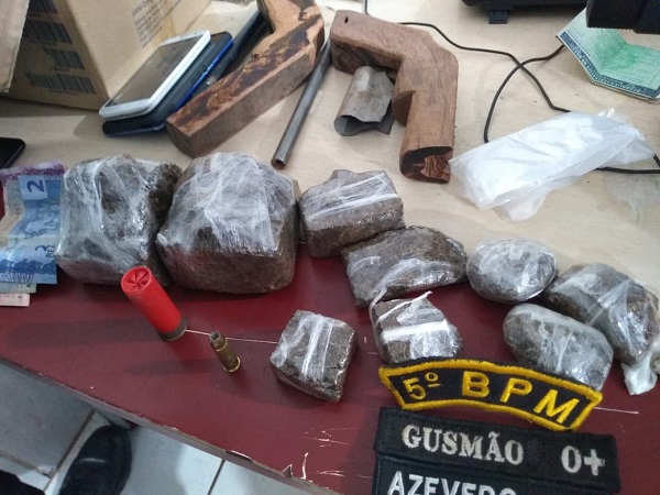 Uma equipe da Polícia Militar comandada pelo sargento Gusmão do 5° Batalhão prendeu na noite de sexta-feira (25) os suspeitos Rute M., 19, Gleice K. L. S., 22, e Maurício M. S., 28, em uma residência na Rua Piratininga, bairro Lagoa, na zona Leste de Porto Velho. O trio foi flagrado com droga e uma arma que estava sendo fabricada artesanalmente.