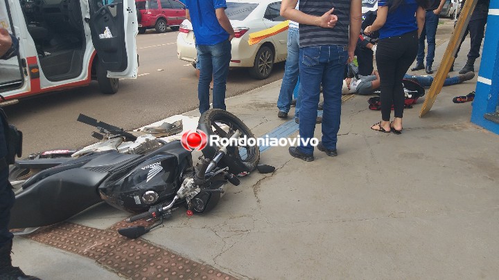 Um motociclista ficou em estado grave após uma violenta colisão ocorrida na manhã desta segunda-feira (28) no cruzamento da Avenida Carlos Gomes com Rua Salgado Filho, bairro São Cristóvão, na região Central de Porto Velho.