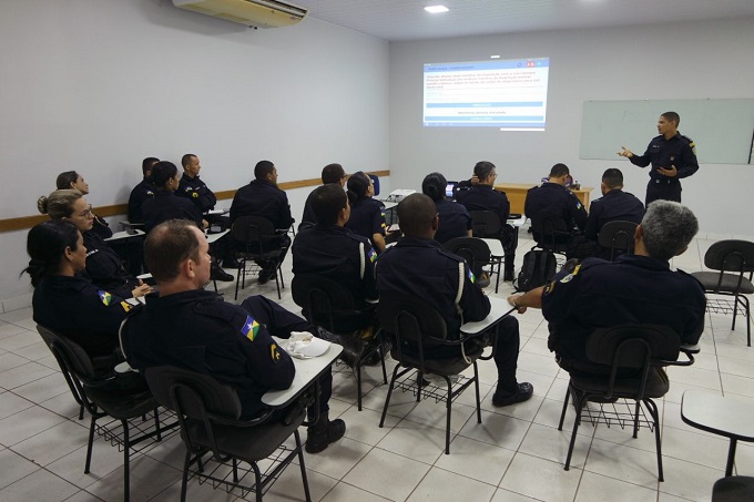 Policiais Militares do 4º Batalhão, em Cacoal, passam por nova capacitação na manhã desta quinta-feira (7). O objetivo é preparar os policiais em relação ao uso do Sistema PM/RO Mobile. Trata-se de uma plataforma avançada de registros online de ocorrências, que objetiva somar a técnica e a tática policial militar às novas tecnologias.