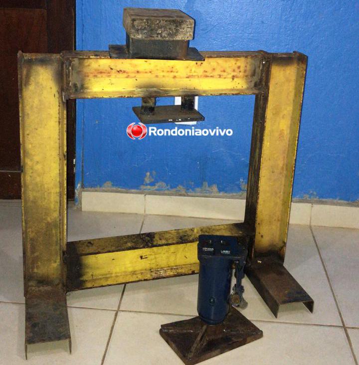 O suspeito foi flagrado com várias porções grandes de cocaína, uma considerável quantia em dinheiro e até mesmo um equipamento que seria usado para prensar entorpecentes para ser embalado em tablete