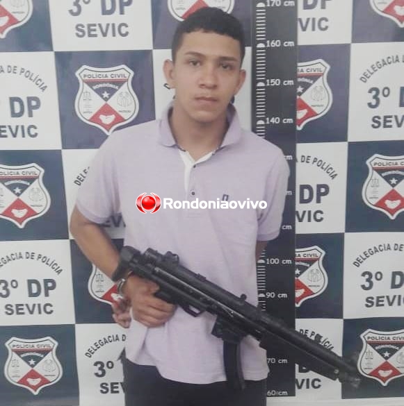 Ele é apontado como autor de uma série de roubos a residência, principalmente na região Central de Porto Velho (RO). No momento da prisão, em uma residência localizada na Rua Três e Meio, no bairro Areal da Floresta, o suspeito foi flagrado com uma metralhadora de brinquedo, de Paintball, que ele usava para cometer os roubos junto com os comparsas.