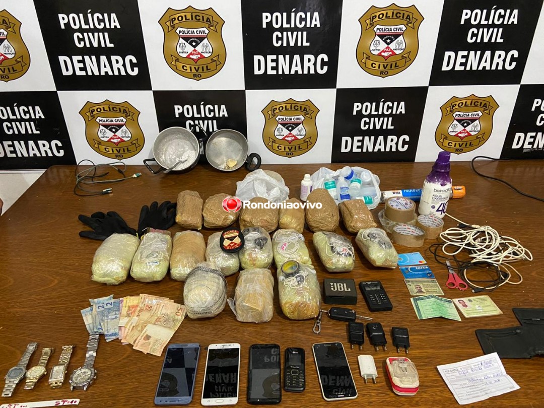 Dentro do imóvel, policiais civis encontraram várias embalagens contendo drogas, celulares, serras, diversas embalagens plásticas de água boricada e uma panela com resquícios de bórico.