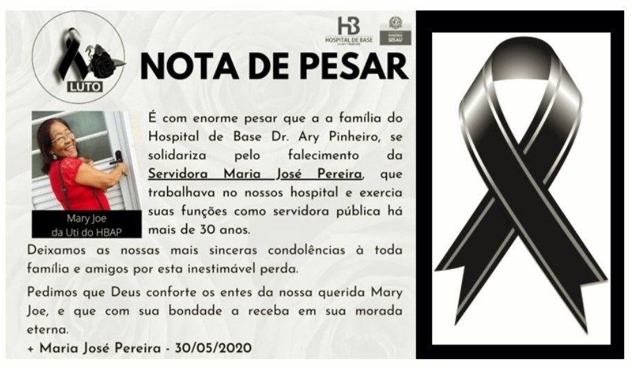 Maria José trabalhava há mais de 30 anos na UTI do hospital de Base Ary Pinheiro. A assessoria da unidade médica emitiu uma nota de falecimento.