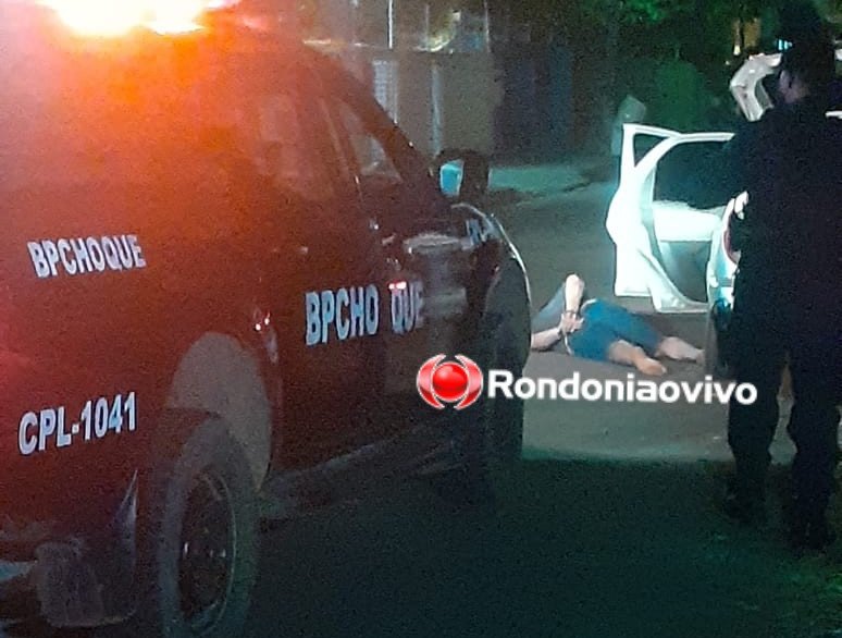 As informações iniciais são de que um casal trocou tiros com a PM durante fuga em um automóvel modelo Celta. No tiroteio, uma mulher foi baleada na região ra virilha. O homem foi preso e levado para a Central de Flagrantes.