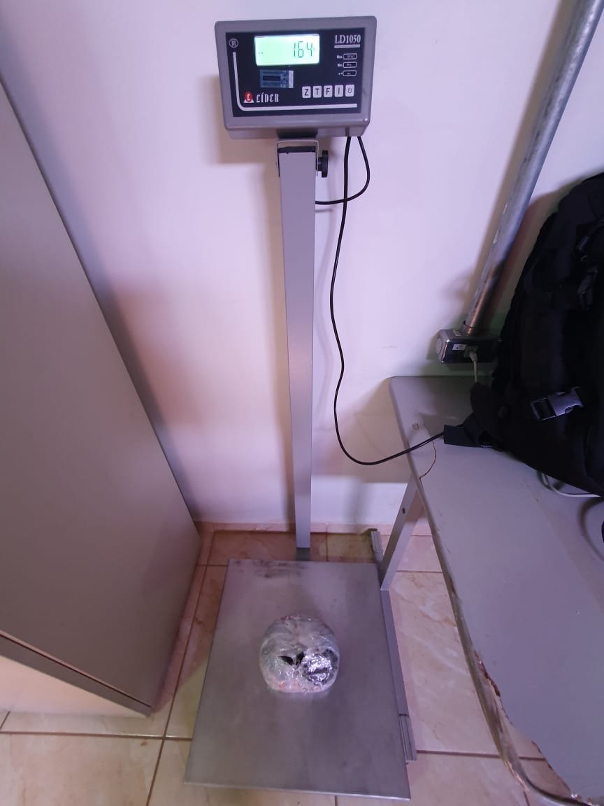 Em fiscalização de transporte coletivo, uma equipe abordou um ônibus do Fundo Municipal de Saúde de Pimenta Bueno, que faz o transporte de pessoas que precisam de assistência médica na capital e encontrou na bagagem de um dos passageiros uma embalagem contendo 1,64 Kg de cocaína.