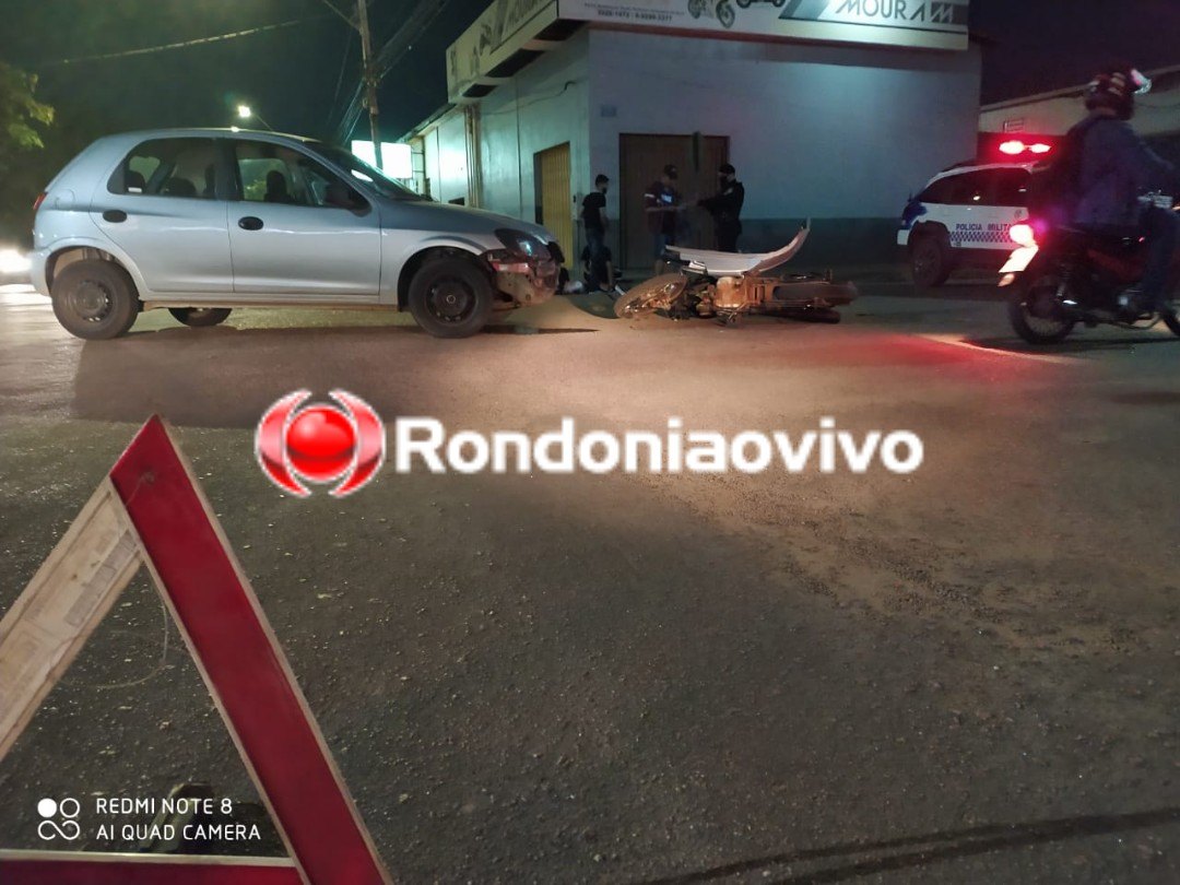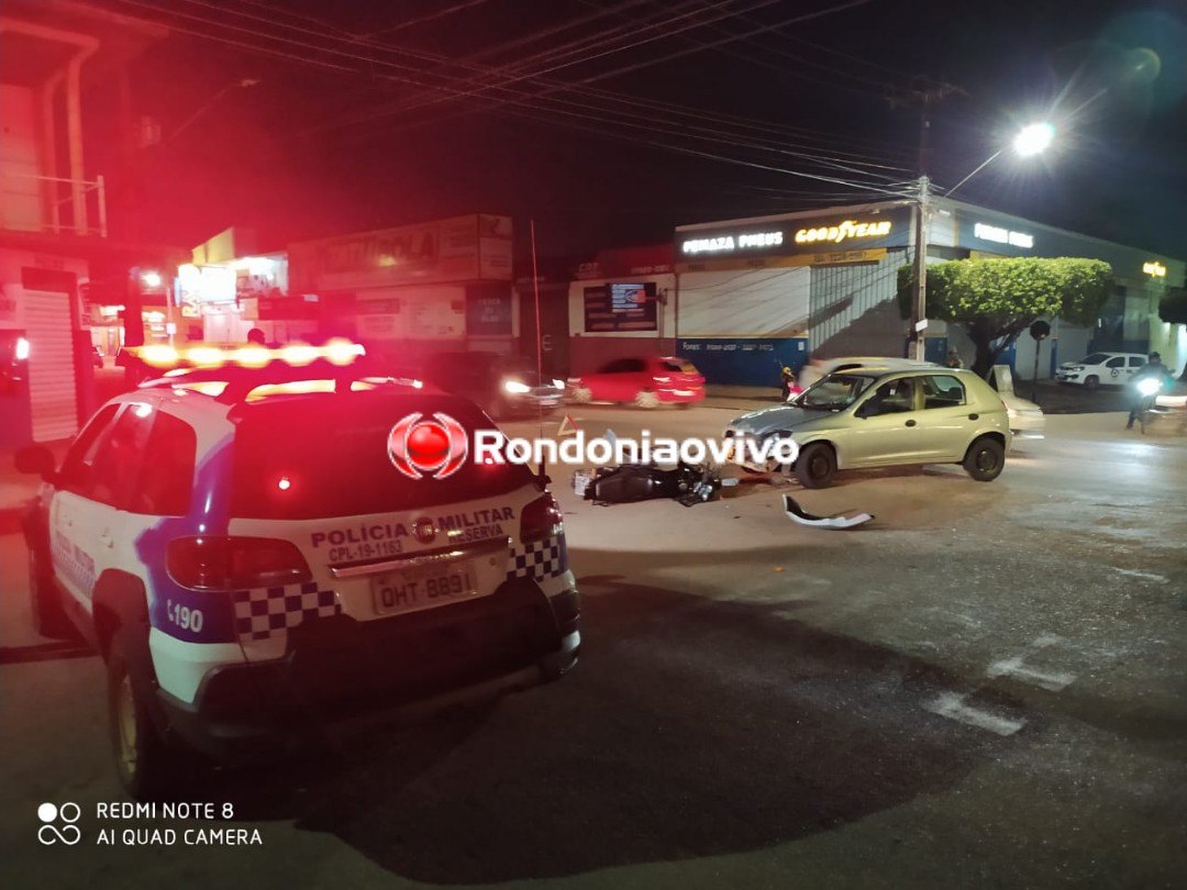 Mais um acidente de trânsito envolvendo carro e moto foi registrado em Porto Velho (RO). Na noite de sábado (22) um homem ainda não identificado foi socorrido com suspeita de fratura na perna após colisão no cruzamento da Avenida Jatuarana com Rua Açaí, bairro Jardim Eldorado, na zona Sul.