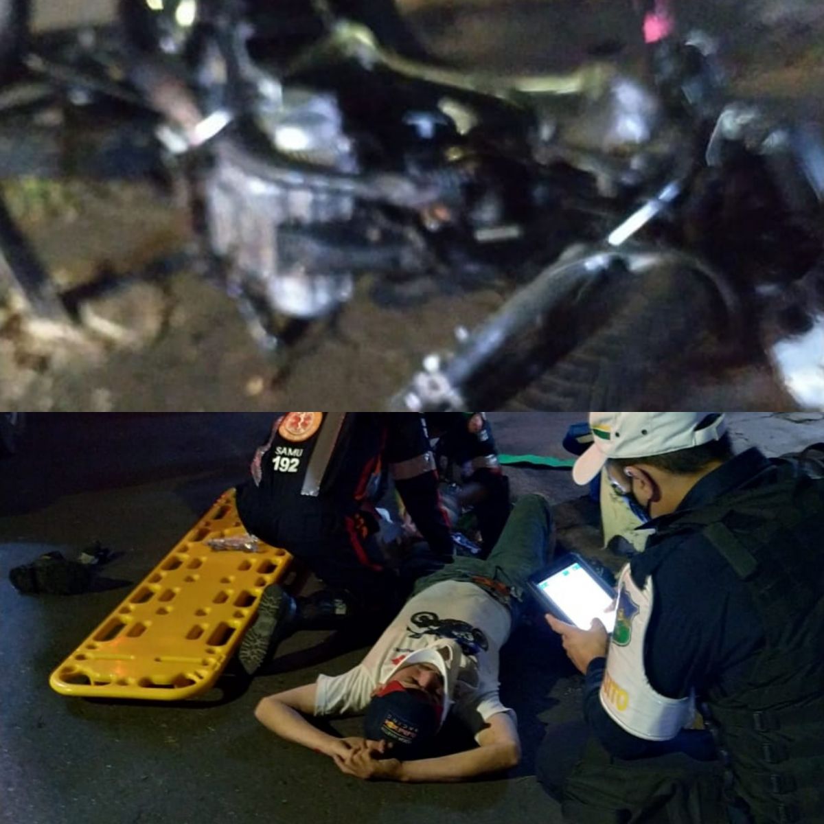 Em virtude da forte colisão, o condutor da XRE300 sofreu uma grave fratura na perna e a mulher teve diversas escoriações pelo corpo. Equipes do Samu e do Corpo de Bombeiros foram ao local e prestaram socorro às vítimas.