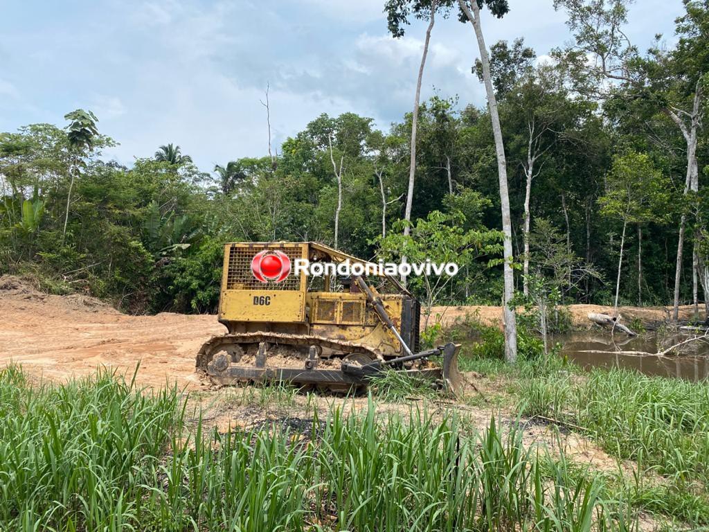 Foi verificado ainda pelos policiais que eles estavam desmatando uma área sem autorização ambiental. Um trator do tipo esteira foi localizado no lote.