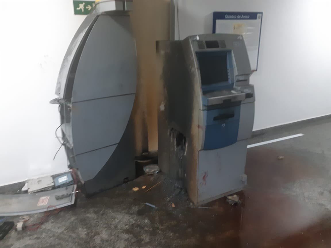Equipados com maçarico, cilindro de oxigênio e objetos pra obstruir as câmeras de segurança, os bandidos fizeram um buraco nos caixas eletrônicos e levaram uma quantia ainda não revelada pelas autoridades.