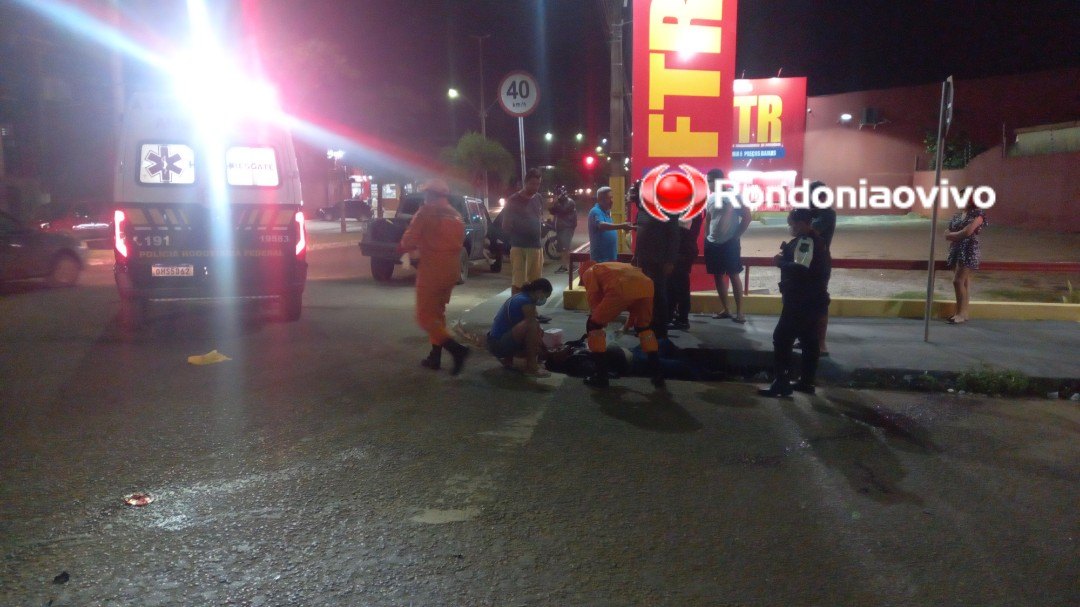 Na noite desta quarta-feira (20) um motoboy de aproximadamente 30 anos ficou ferido após colisão com um carro modelo Virtus no cruzamento da Avenida Rio de Janeiro com 13 de Setembro, bairro Areal, na área Central de Porto Velho (RO).