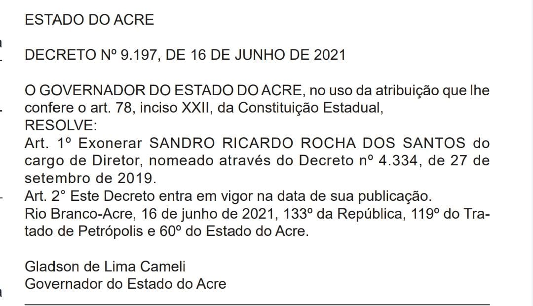 Informações repassadas pelo jornal acreano AC 24 horas dão conta de que a nomeação foi um pedido direto do governador