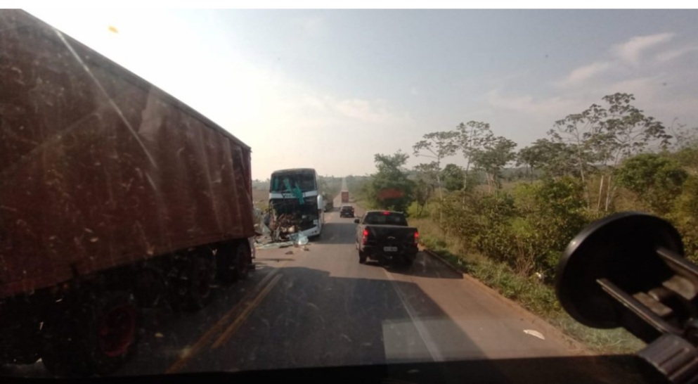 O acidente envolvendo um ônibus interestadual e uma carreta aconteceu na manhã desta quinta-feira (16) na BR-364, entre os municípios de Cacoal e Pimenta Bueno, em Rondônia.
