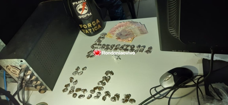 Durante as buscas os policiais apreenderam aproximadamente 70 porções de drogas com o acusado