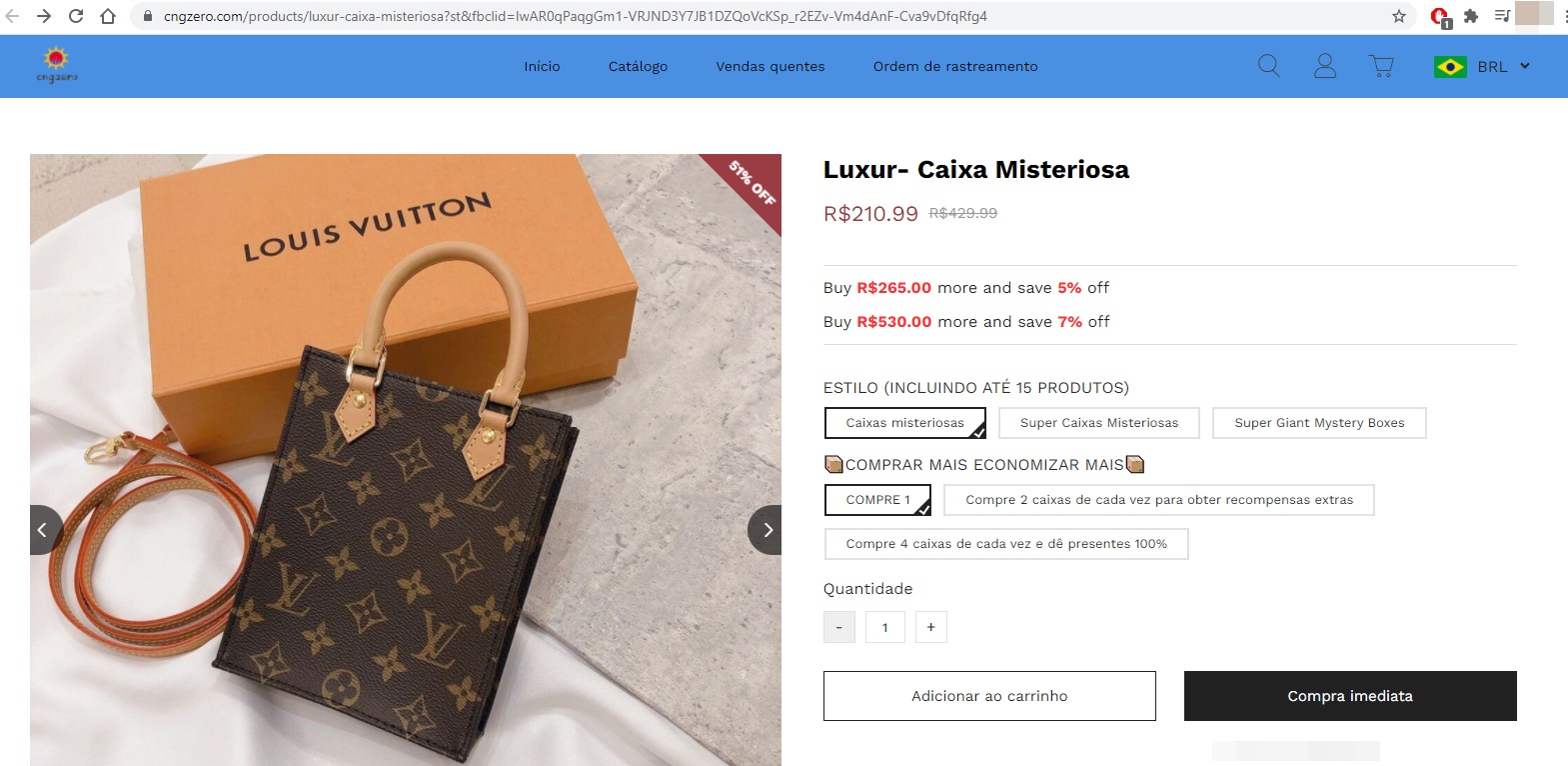 Os bandidos oferecem uma caixa misteriosa só com produtos de luxo. Eles afirmam que os materiais foram apreendidos na alfândega e que são autênticos, com etiquetas e notas fiscais.