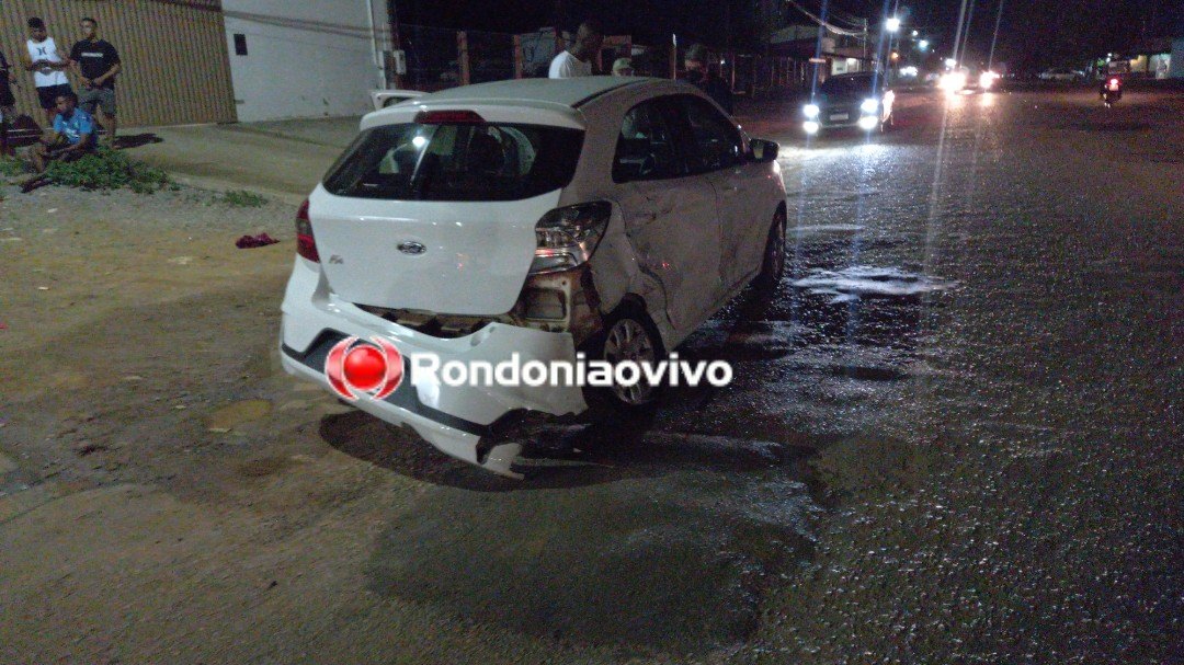 O Rondoniaovivo apurou que o motorista de um carro modelo Ford Ka vinha na Elias Gorayeb, quando avançou o cruzamento e causou acidente com o motoboy e uma caminhonete SW4 que seguiam na Avenida Calama.