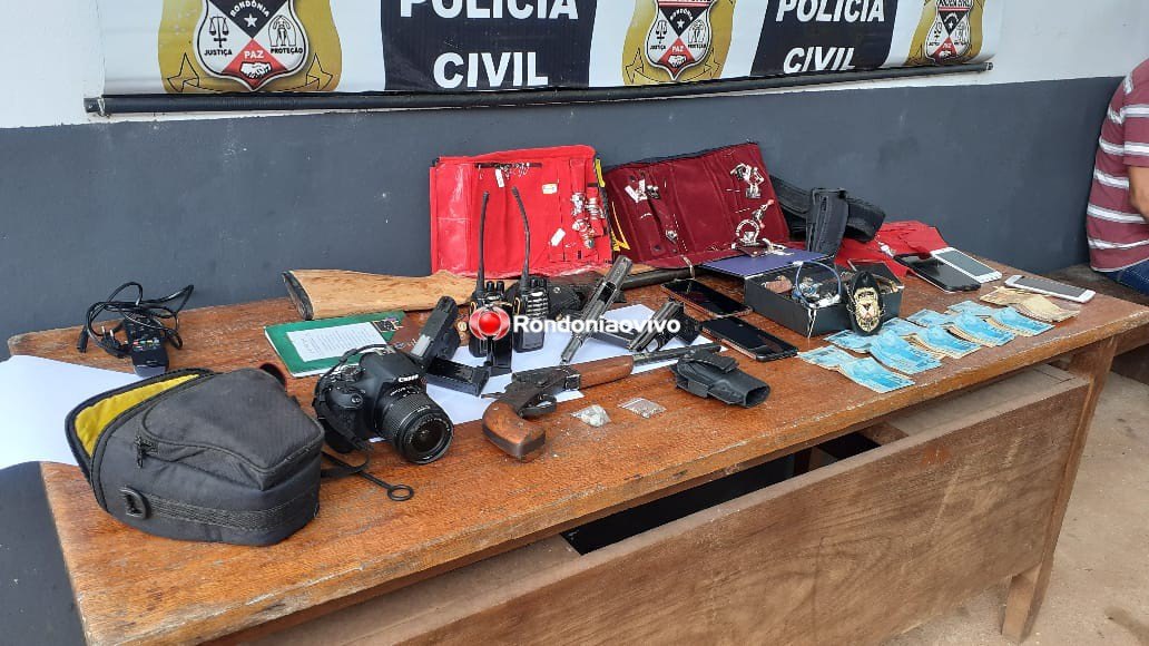 Durante as investigações foram localizados nos “matagais” nas proximidades da mesma Vila veículos subtraídos, outros veículos parcialmente desmontados, motocicletas adulteradas, bem como em “barracos” utilizados como esconderijos pelos infratores, também, apreenderam coletes balísticos de forças de segurança diversas, acessórios, coldre de pistola, objetos e documentos pessoais pertencentes às vítimas de vários outros crimes de roubos.