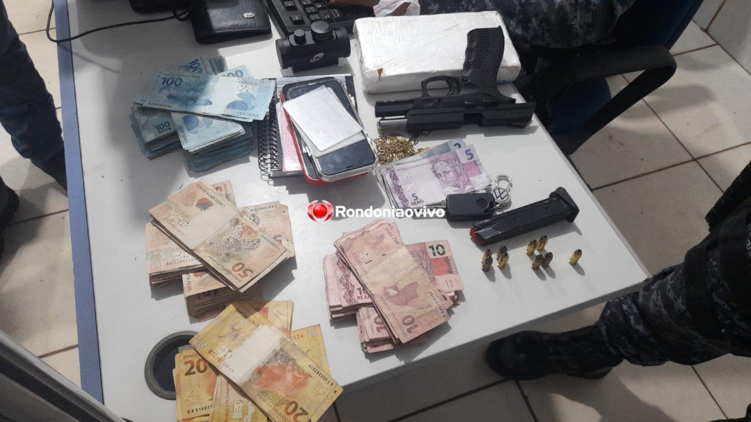 Durante a abordagem foi encontrada a quantia de R$ 12 mil em dinheiro trocado. O acusado em seguida levou os policiais até a casa dele no bairro Lagoinha onde foram encontrados um tabletes de cocaína oxidada e a quantia de mais de R$ 7 mil. A mulher do acusado que estava na casa também foi presa.