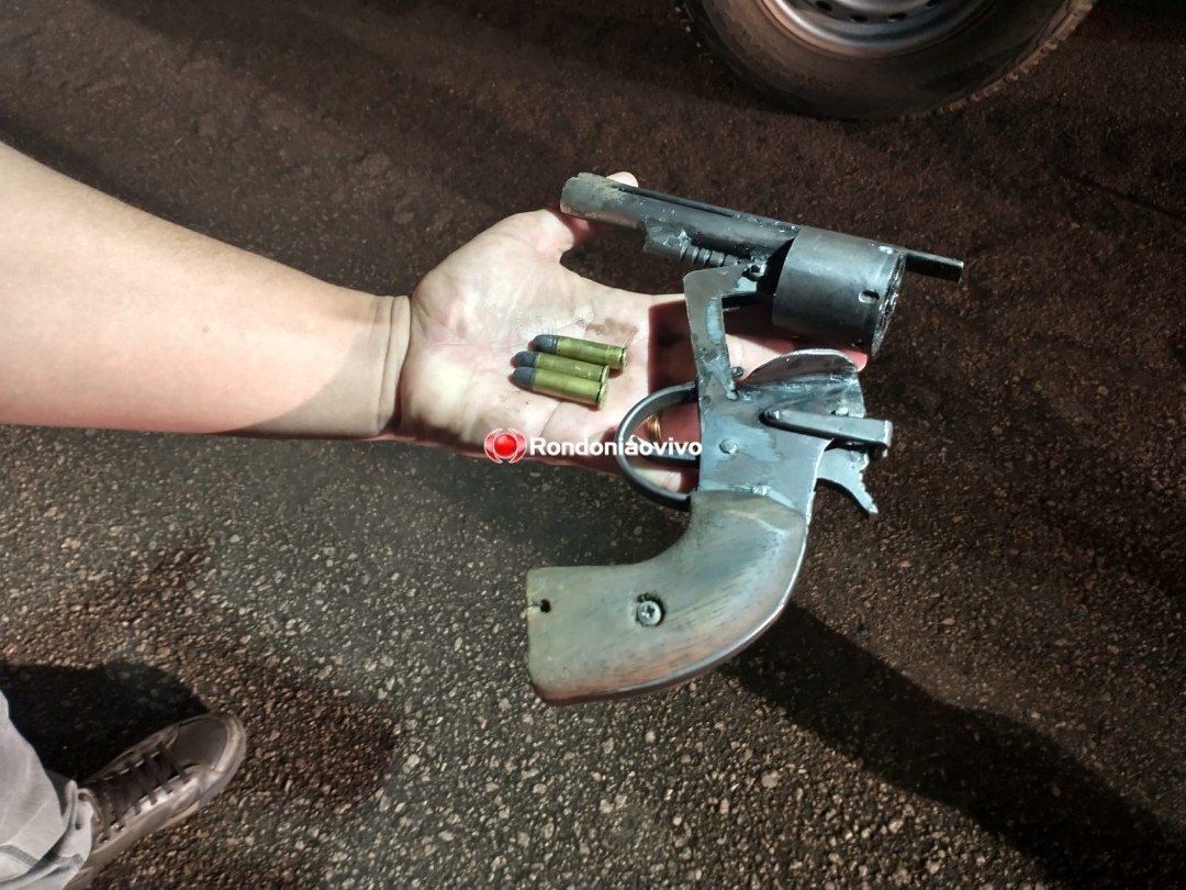 Ele logo foi abordado e estava portando uma arma de fabricação caseira calibre 38. A motocicleta não constava restrição e ele informou que tinha pego com um amigo no condomínio Morar Melhor.