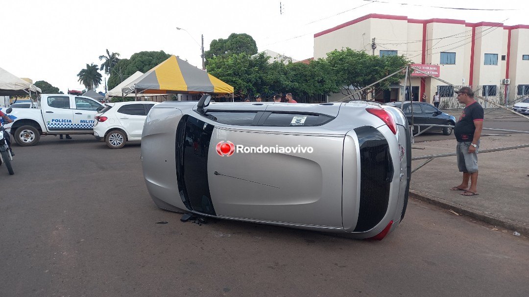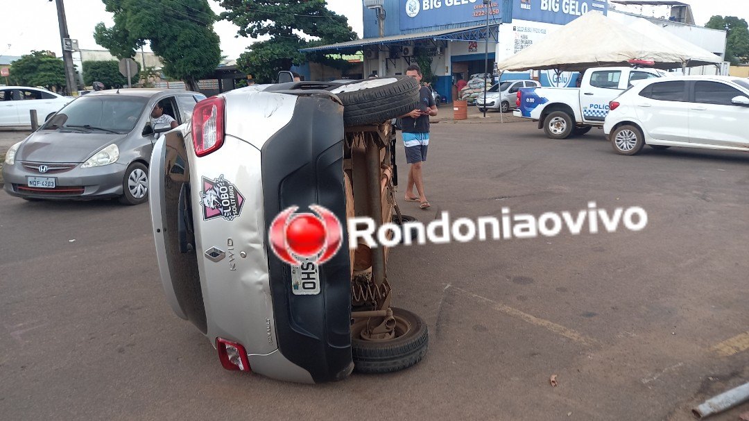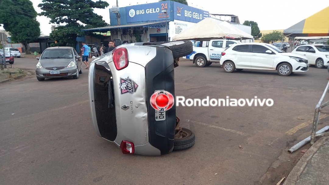 Um carro de motorista de aplicativo capotou no final da tarde desta sexta-feira (15) após colisão no cruzamento das Rua Jaci-Paraná com Venezuela, bairro Nova Porto Velho, na capital de Rondônia.