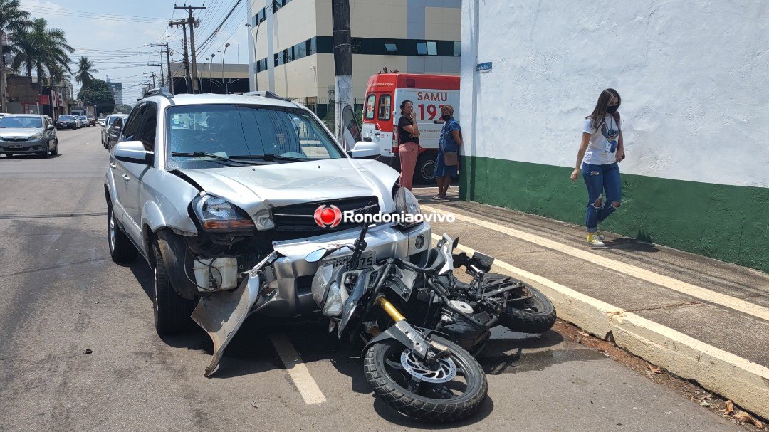 Uma mulher de aproximadamente 30 anos ficou ferida após ser atropelada por um carro na tarde desta segunda-feira (19) no cruzamento da Avenida Pinheiro Machado com Rua José Bonifácio, na região Central de Porto Velho (RO).