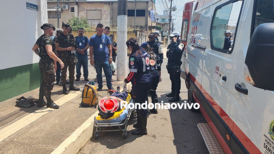 A vítima ficou ao solo com suspeita de fratura na perna e foi socorrida pelo Samu ao hospital João Paulo II
