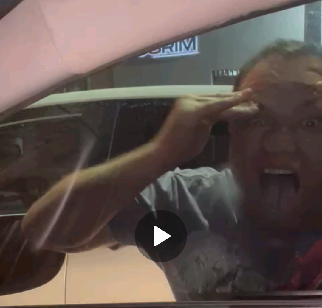O motorista de um carro modelo Corolla de cor branca foi filmado destruindo o automóvel de uma mulher após um breve desentendimento no trânsito.