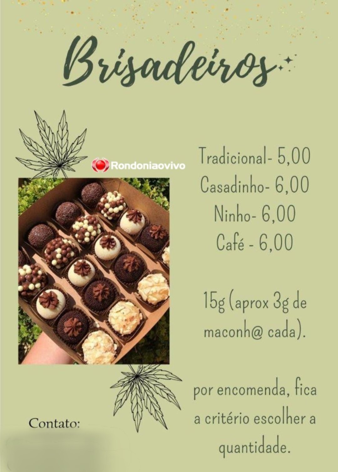 Um banner especificava os sabores e preços que variavam de R$ 5,00 a R$ 6,00 cada bolinha de doce. O casal vendia de forma escancarada nas redes sociais sem omitir que os "brigadeiros" tinham o recheio de maconha.
