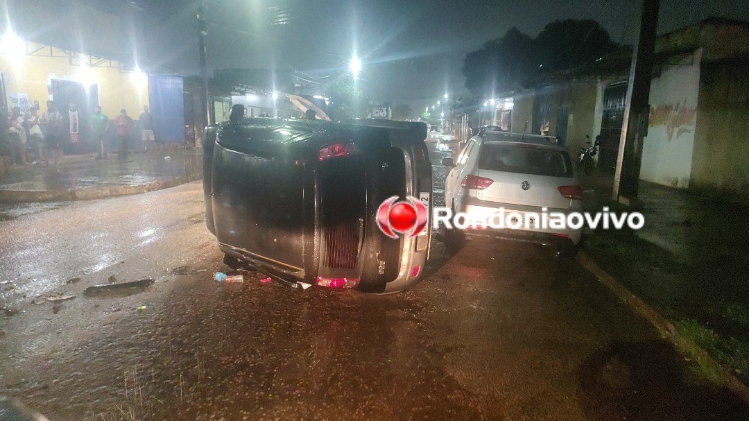 As imagens mostram o motorista de um Uno vindo em alta velocidade e atingindo dois carros estacionados (um Pálio e um Fox). Em seguida o carro já capotando acerta um veículo Fiat Strada que seguia no sentido oposto.