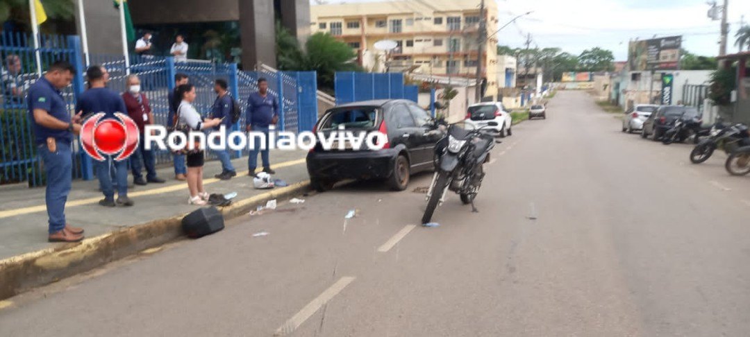 Após a colisão, uma das motos ainda bateu na traseira de um carro Citroen que estava estacionado.