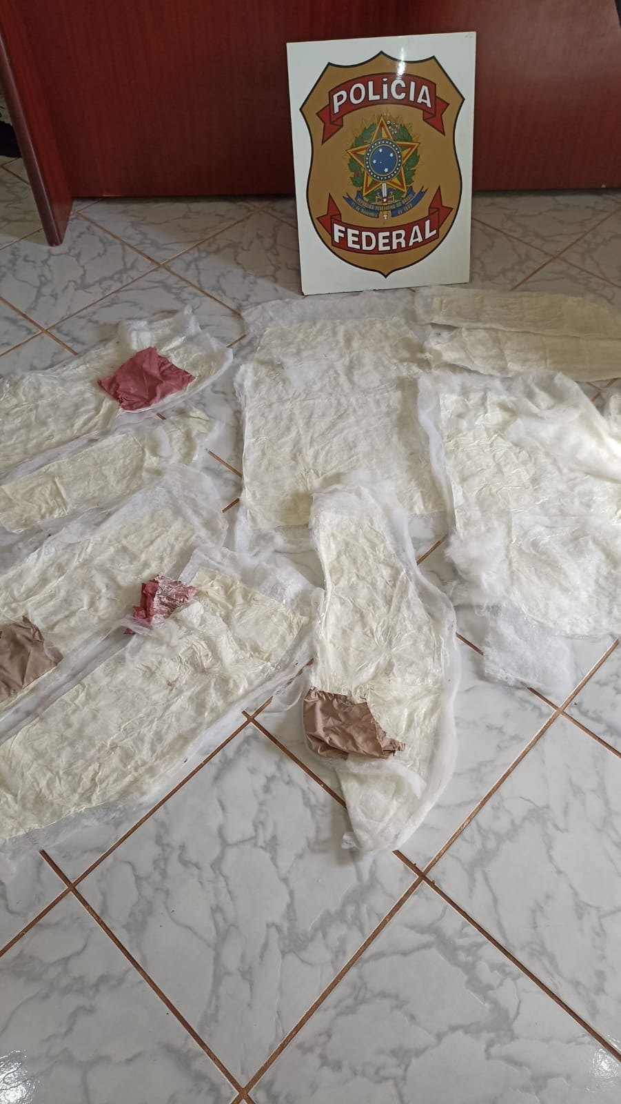 Durante a abordagem os Agentes perceberam que o peso das peças de vestuário era incompatível e numa busca mais minuciosa perceberam que o forro das roupas era, na verdade, cocaína.