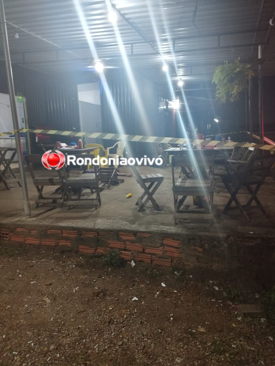 A dona do comércio contou estava na cozinha quando ouviu somente os tiros e depois encontrou o homem morto próximo das mesas.