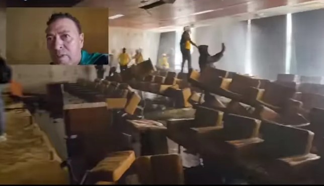 William fez transmissão ao vivo da depredação dos prédios públicos em Brasília; neste momento, ele estava no plenário do STF, onde mostrou a destruição de poltronas, cadeiras dos ministros, vidros quebrados e documentos destruídos - Reprodução/Facebook