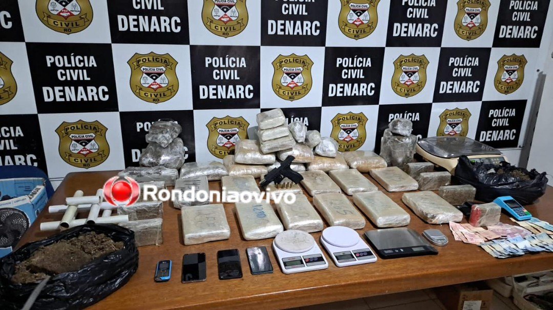 Em mais um trabalho de combate ao tráfico de drogas, investigadores do Departamento de Narcóticos (Denarc) prenderam o trio identificado como Jordan G. S. M, 23, Rogério S. S., 26, e Emilson Wilkes da C., 35, com aproximadamente 40 quilos de maconha skunk e uma arma de fogo durante abordagem em duas residências na Rua Acesso Maranhão, bairro Aponiã, em Porto Velho (RO) nesta segunda-feira (06).