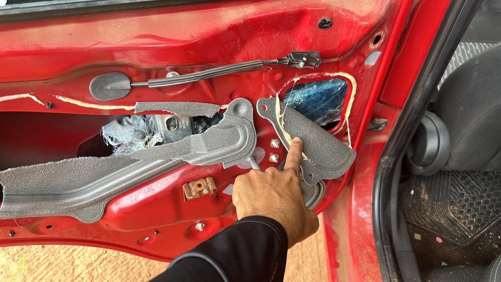 A droga encontrava-se guardada na casa do professor D.M. da S. de 45 anos e foi transportada até a chácara de R.F.V 43 anos onde foi colocada dentro das portas de um veículo Ford KA de cor vermelha de propriedade de M.U.O.B DE 39 anos o qual transportaria essa droga para até a cidade de Cacoal.