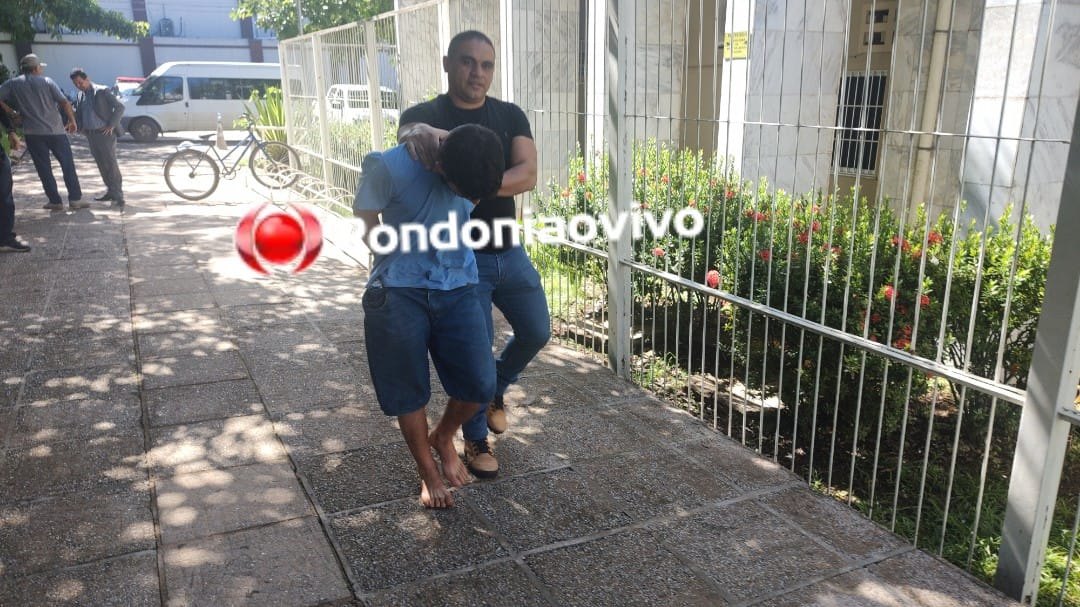 O bandido foi preso após ser filmado na madrugada desta quarta colocando fogo em uma viatura da Polícia Civil na frente do Departamento de Flagrantes