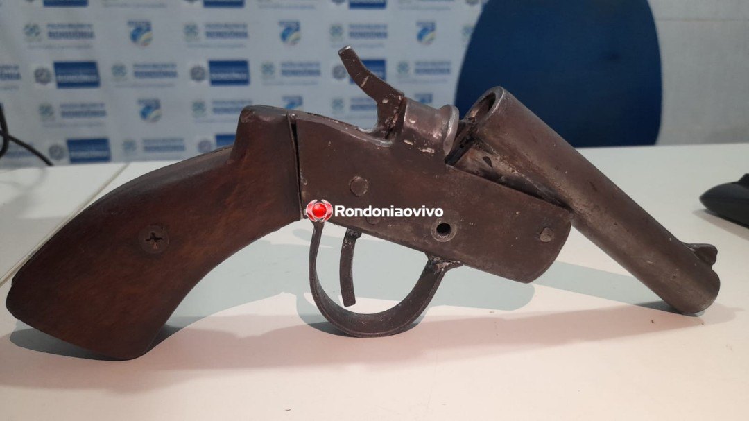 Os acusados foram abordados em uma bicicleta e confessaram que estavam com a intenção de fazer roubos na região. A dupla portava uma arma de fabricação caseira que não tinha munição.