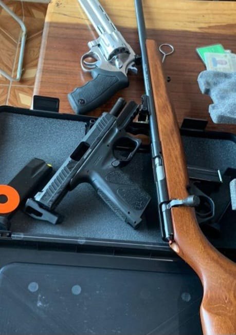 Durante a ação, foram apreendidas quatro armas constantes no acervo do investigado, além de munições de diversos calibres.